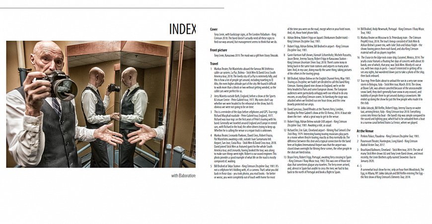 The book presents a view unlike any other of what it’s like on the road, with King Crimson, Peter Gabriel, Stick Men, Paul Simon, Peter Frampton, L’Image, and others.