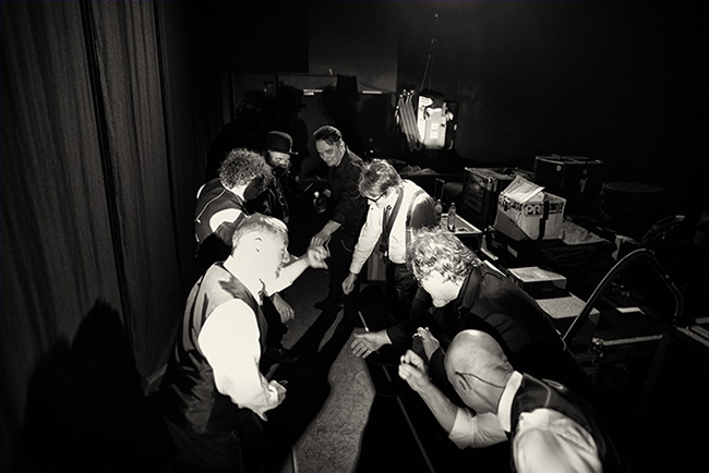 Not pictured: Ian ‘Elvis’ Moore: truck driver. Mark Vreeken: FOH engineer. David Singleton: mgmt. Bill Rieflin: drums.
