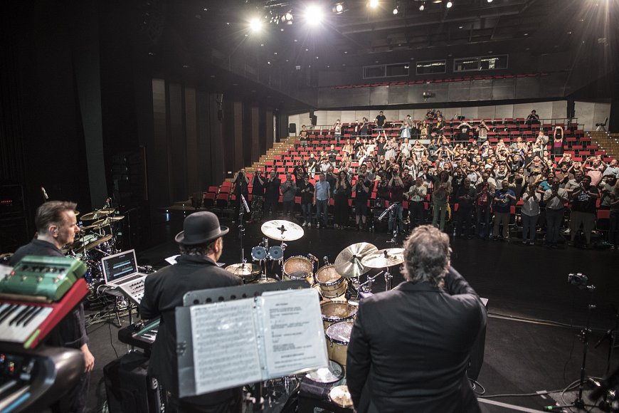 Before sharing pictures from the first show, at Earth Hall, here are some shots from our warmup show, for just a few invited guests, at the Aula Artis Centre, where we’ve been rehearsing.