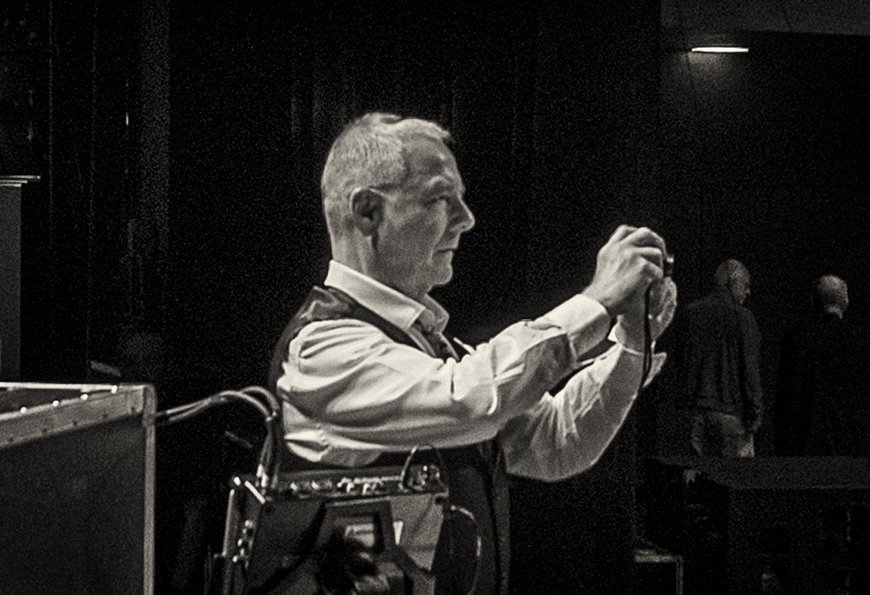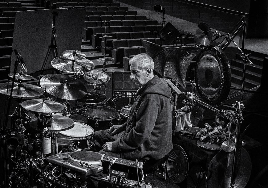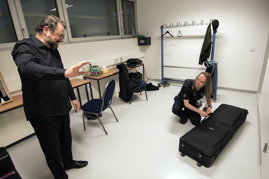 When it’s the last show in a theater, some advance packing helps with the load out. So, Jason can usually be found in the dressing room, dismantling the practice instruments.