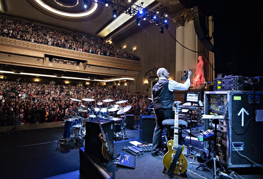 Something that goes on every show day is that after we’re done with the band, Robert stays onstage and composes a soundscape which will play from then on, as the audience comes in.
