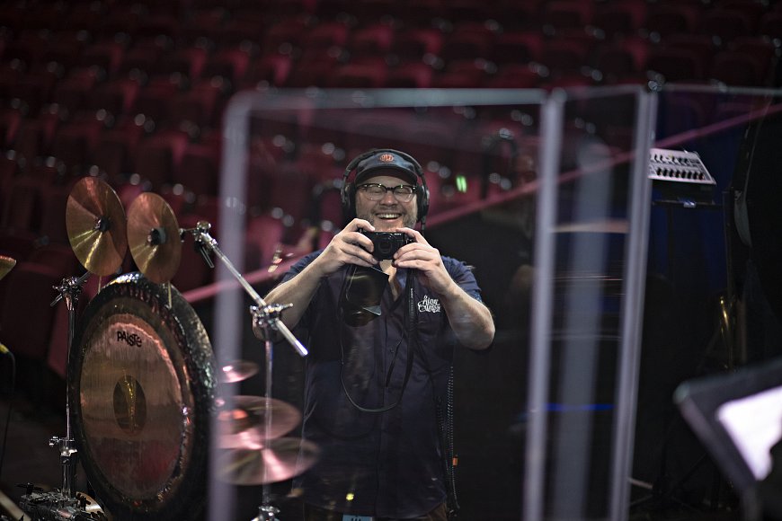 Before many shows there is an event called the Royal Package, where some people come into the front seats and hear talks from mgr David Singleton, from Robert, and from various other band members. Tonight, Jeremy and I had our turn, and I got to take some pictures.