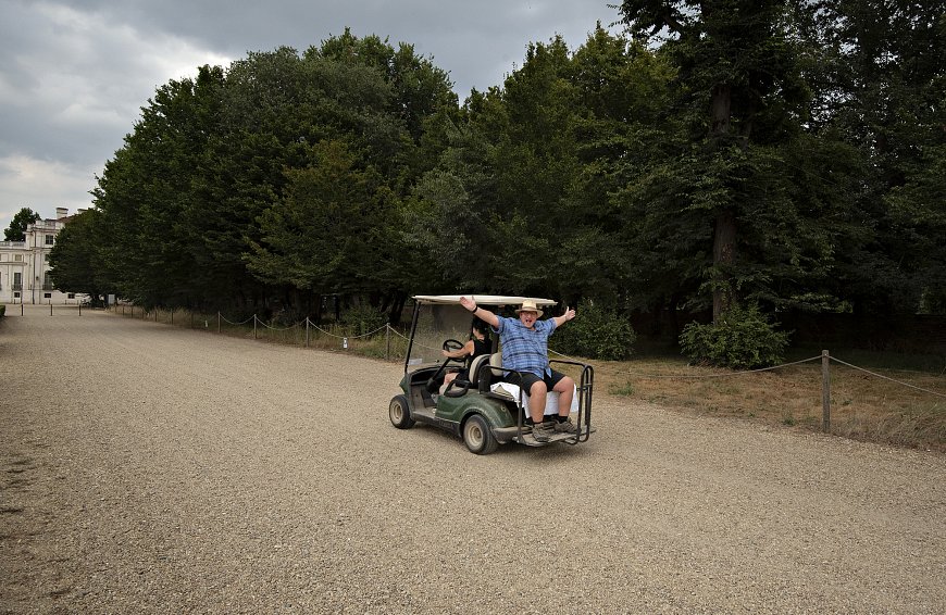 How do we get back and forth to the dressing rooms? Here’s our tour manager, Dave, with asst. Renee driving, showing me the way!