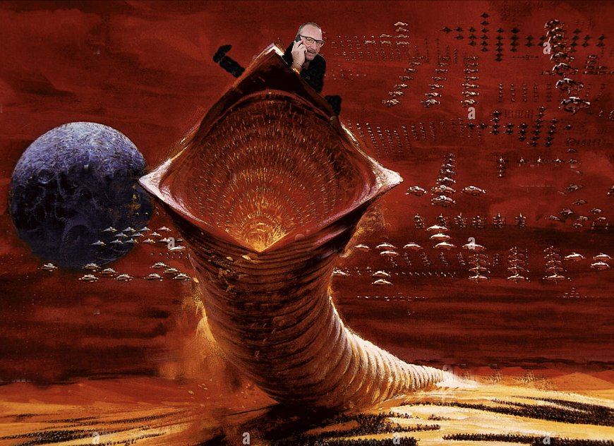 Finished re-reading Dune, and now I’m seeing giant sand worms everywhere. Here’s a mockup I did of Dave, our tour manager - I think arranging this tour has been akin to riding an Arrakis worm.