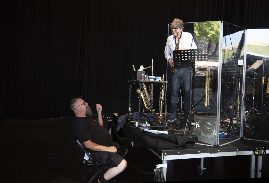 On the side of the stage before going on… there’s Russ readying our monitors