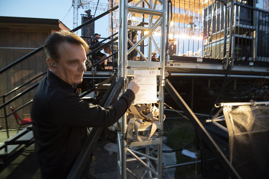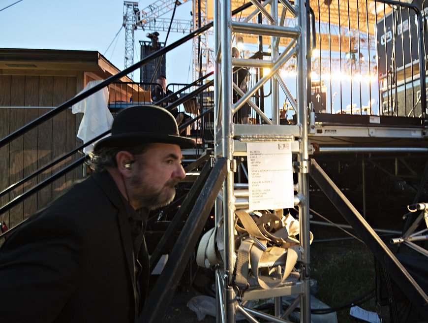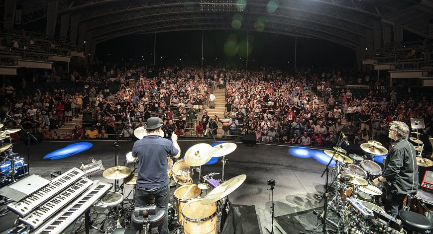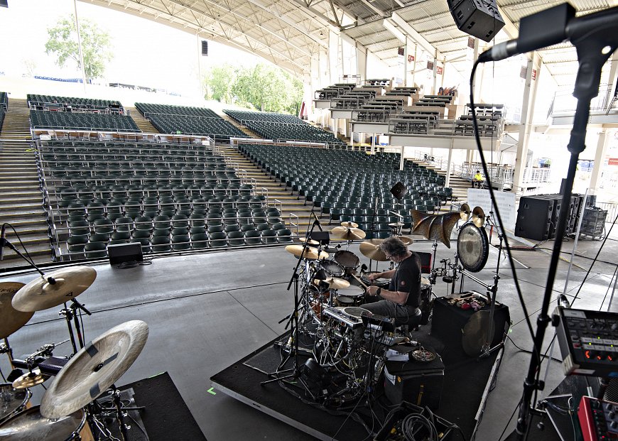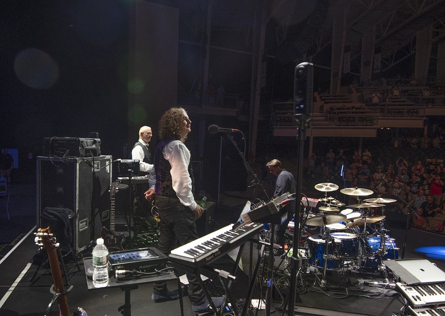 Let me share a moment from tonight’s show. It was close to 90 degrees and humid when we went onstage. That makes the instruments a bit sticky, and dehydration an issue too. The first pieces went well, then came Construkction of Light, the piece that presents the biggest challenges for me, with Trey Gunn’s extraordinary Stick part, solid 8th notes through most of the piece, and the band hanging on the bass part. With the piece approaching I eyed my water bottle thinking a sip of water would be wise before tackling the piece. Also saw my handkerchief lying on the keyboard - my nose a bit runny, that’d be useful too. But then I realized my in-ears were coming loose and I’d better tighten the clasp that keeps them from falling out. So, while hitting pedals and reaching for the Stick, I fumbled for the clasp near my throat, but couldn’t find it - had to give up on that and begin the piece, starting the tricky 8th notes that would keep my hands busy for the next 5 minutes, ignoring the thirst, the runny nose and the in-ear monitors half fallen out.