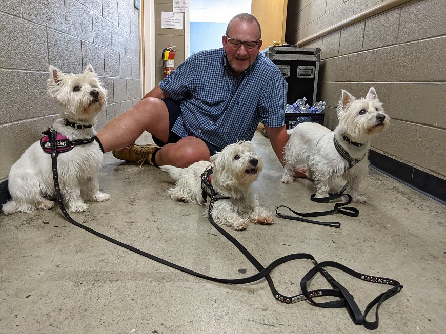 A visit from my wife Andi, and our three Westies.