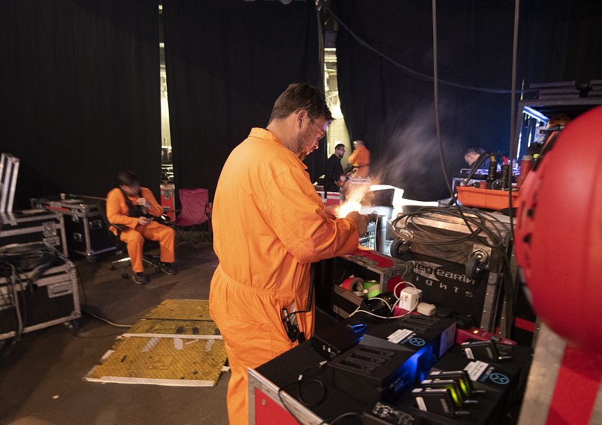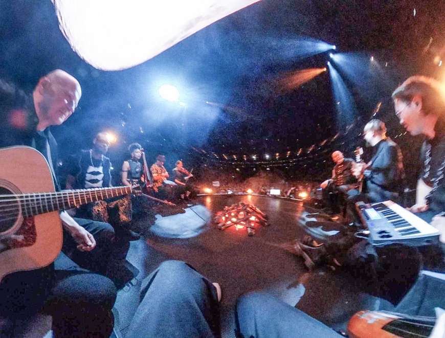 The campfire prop onstage for the first pieces contains a real fire, though a small one… here’s where it gets started