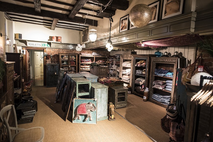 Trading Boundaries includes a restaurant, a stage, and multiple rooms with an assortment of home furnishings and other things for sale.