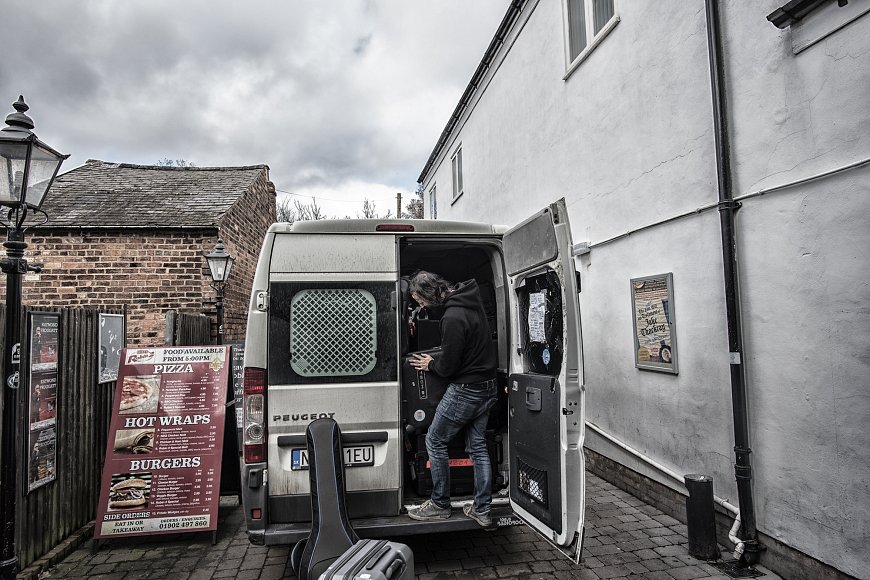 We have two shows in England and one in Wales. The band flew into England from Prague, while Peter drove the van with our gear.