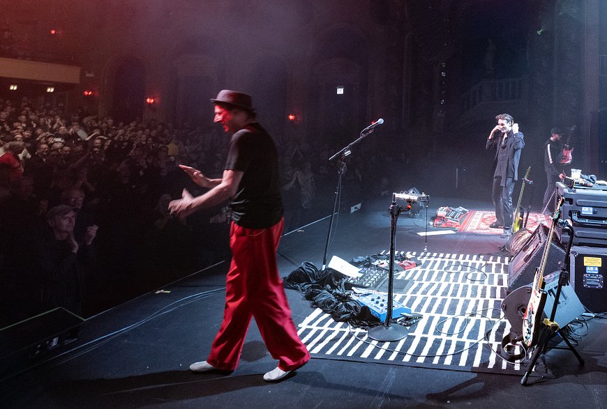 and heading down to stage level, the ever practicing Danny
