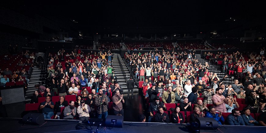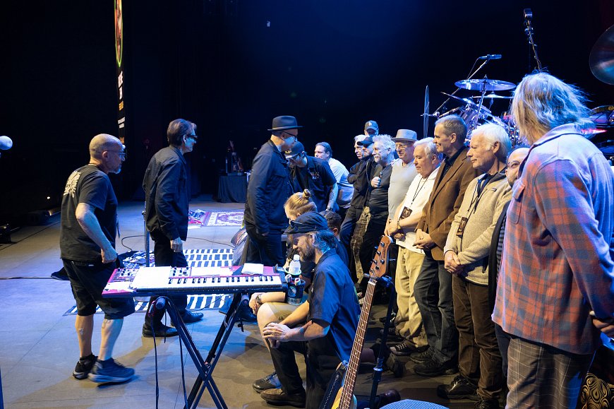 We hastily assemble everyone onstage for a group photo